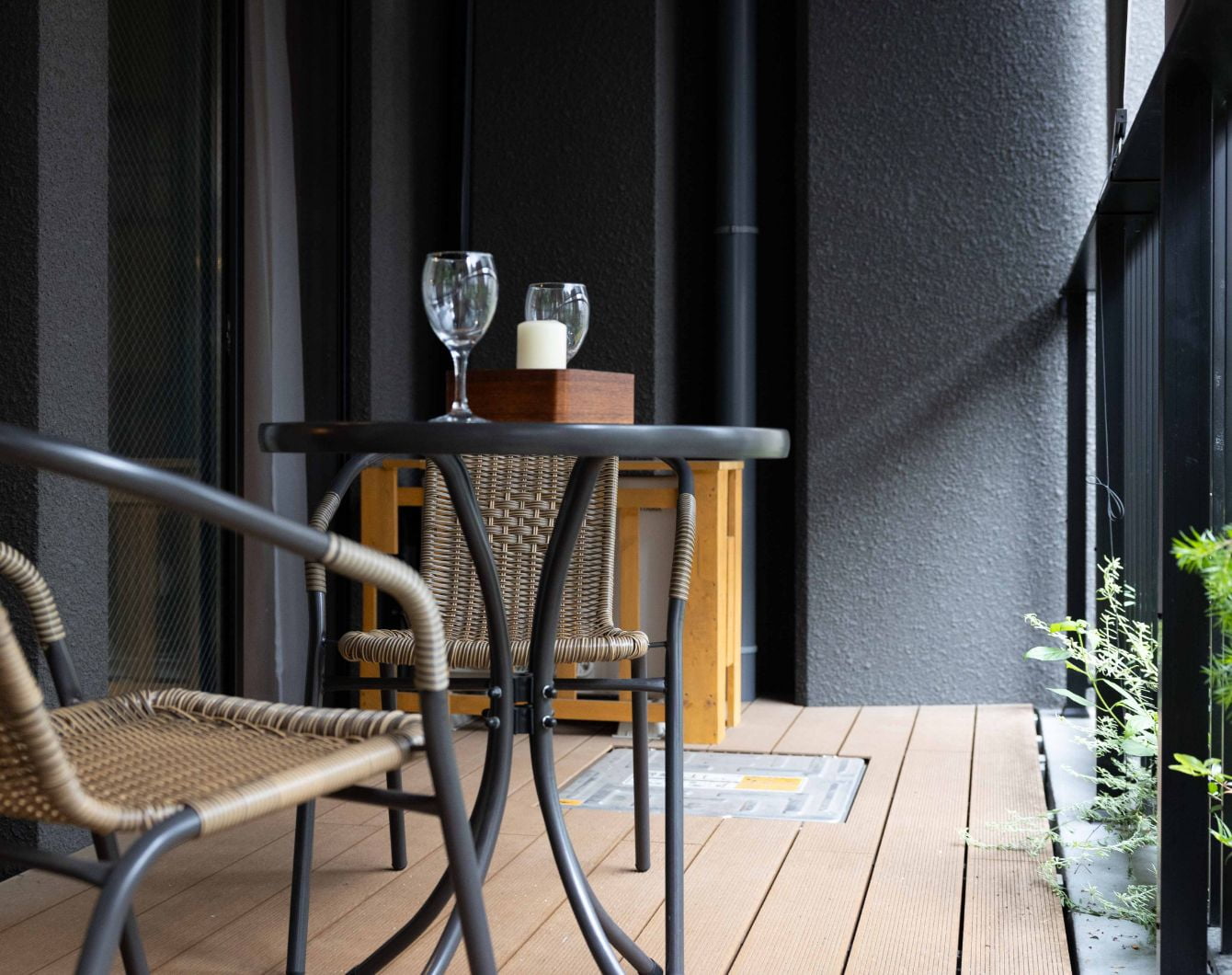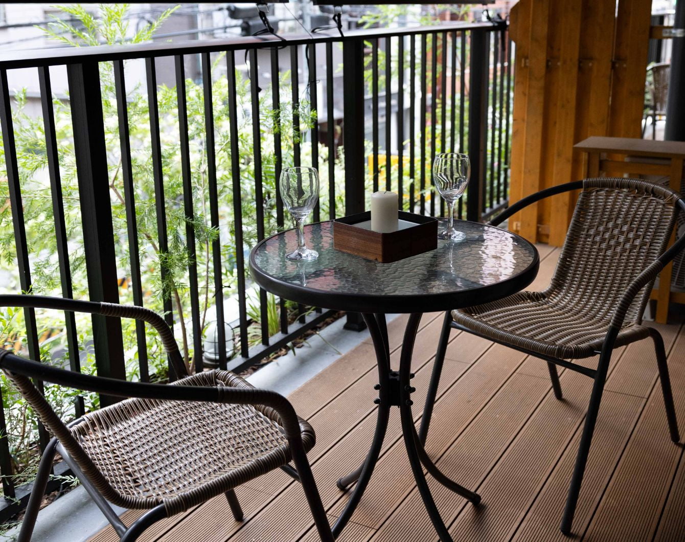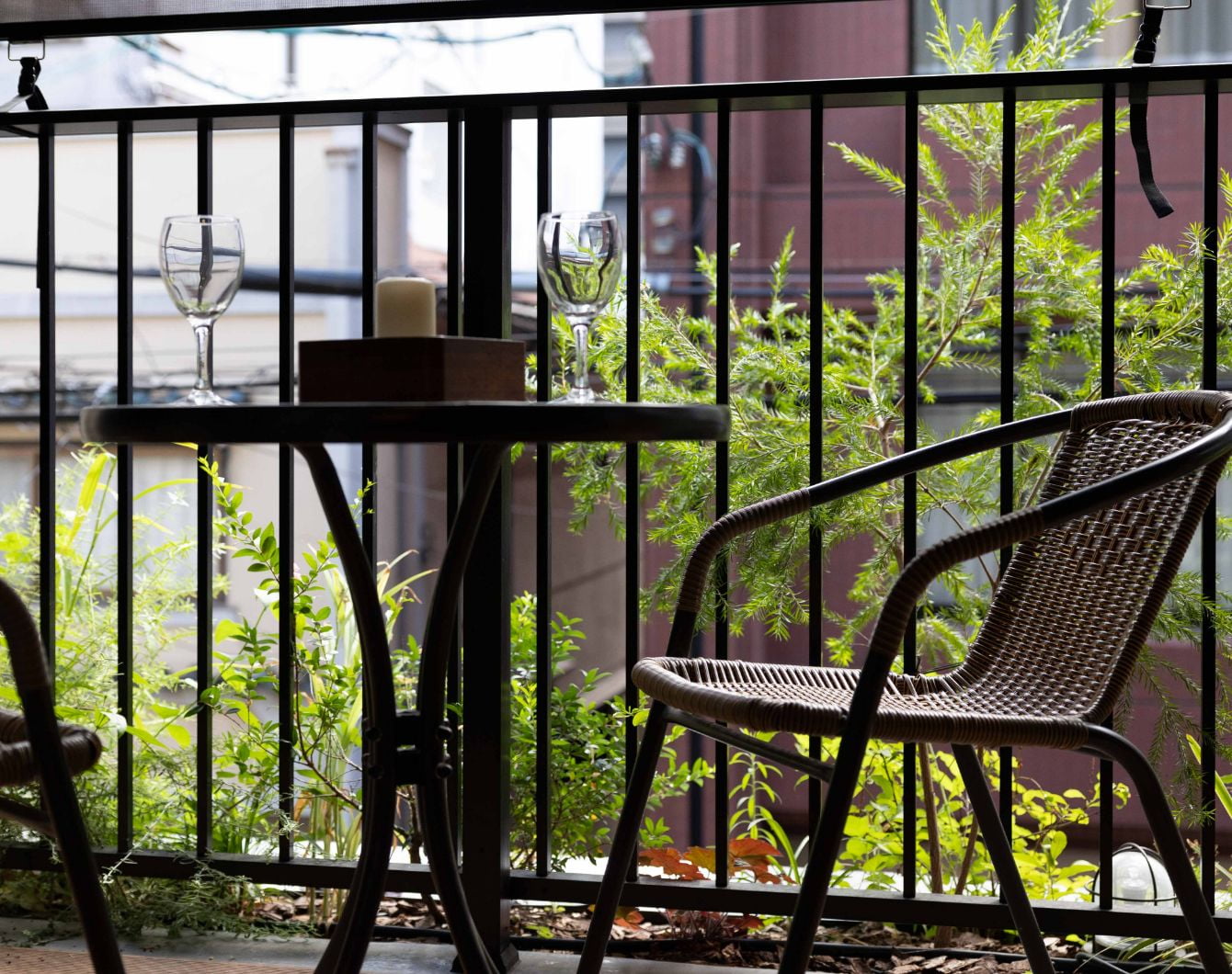 植栽のある広いバルコニー。