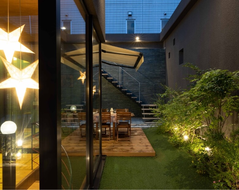 また、ガーデンテーブルでは、水音と滝の眺めに癒されながら、