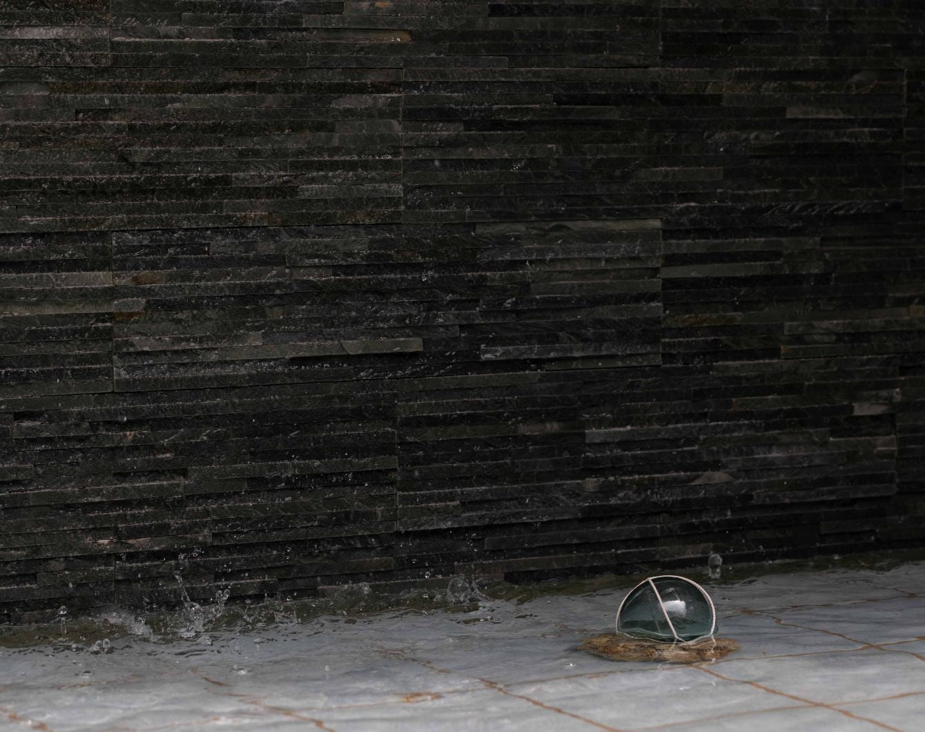 滝の流れる屋上庭園。