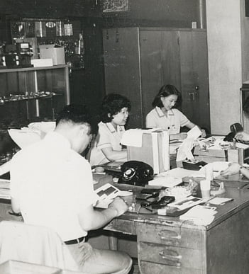 旧本社ビルが出来上がったのは、1962年、壁が赤、床が黒、