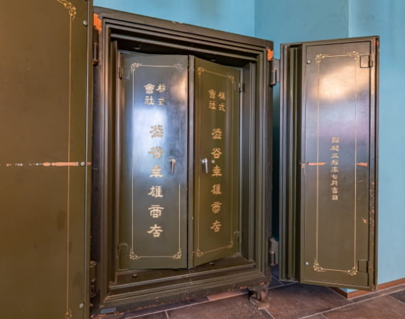 エントランスホールに鎮座しているのは、1955年製の耐火金庫です。